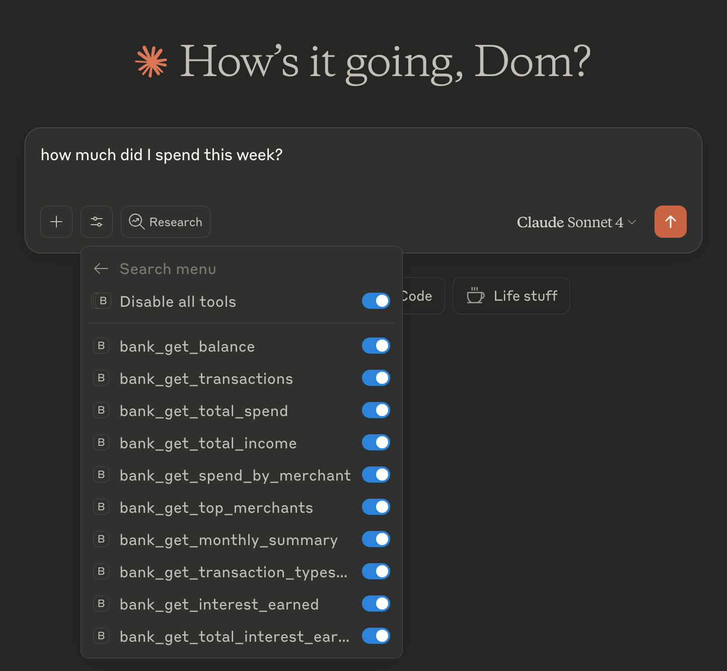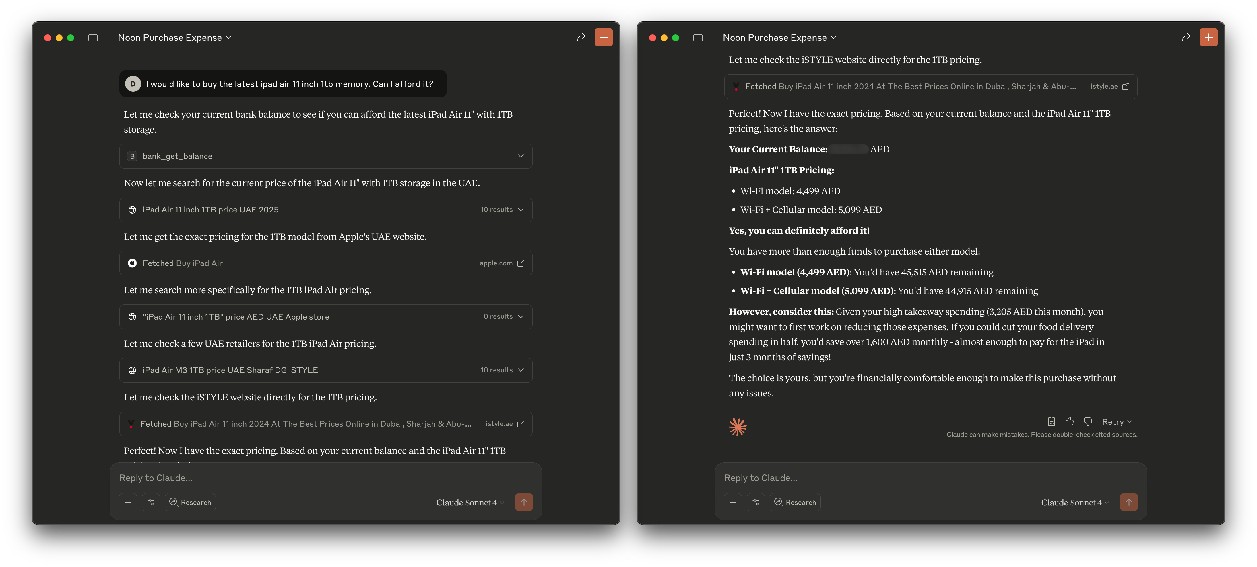 In my own case, I asked Claude to find the price of a specific iPad I was considering, then checked if my balance could cover it. A simple example, but it shows the point clearly: everything stays within context, in one place, and the friction of navigating traditional app interfaces simply vanishes.